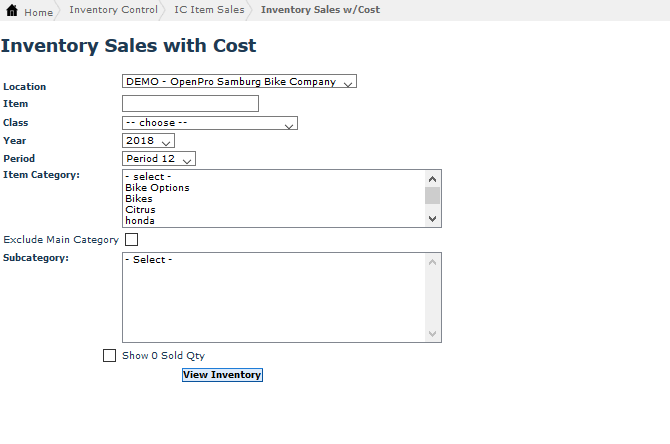 The Inventory Sales History with Cost Screen allows you to view a history of your sales transactions for your inventory with item costs included.